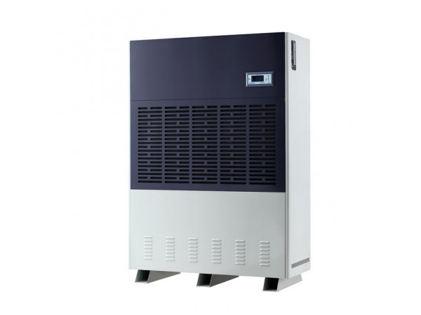 工業(yè)用除濕機(jī)通過(guò)風(fēng)機(jī)將潮濕空氣抽入機(jī)器內(nèi)部,通過(guò)壓縮機(jī)制冷將蒸發(fā)器降溫至露點(diǎn)以下,潮濕空氣經(jīng)過(guò)蒸發(fā)器在表面凝結(jié)成水,匯集至接水盤(pán)后,流入水箱中,干爽空氣經(jīng)冷凝器重新加熱由出風(fēng)口排出,這樣不斷循環(huán)將室內(nèi)濕度降低。